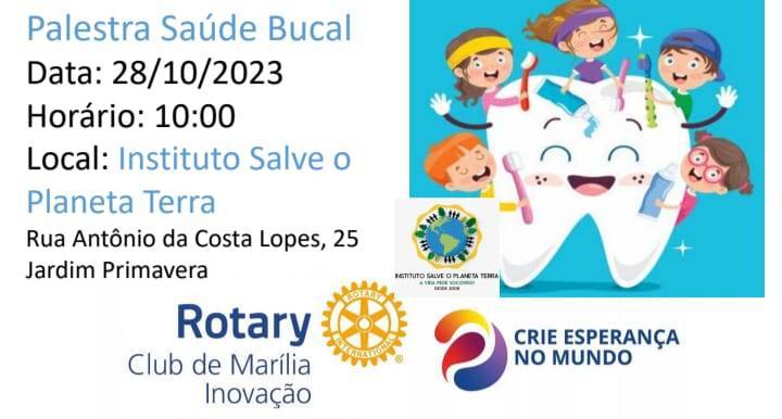 Associados(as) do Rotary Club de Marília-Inovação, pertencente ao Distrito 4510 do Rotary International, promoveram uma ação comunitária muito especial na cidade de Marília. Essa iniciativa envolveu crianças apoiadas pelo INSTITUTO SALVE O PLANETA TERRA, proporcionando a elas e seus pais orientações detalhadas sobre cuidados com a saúde bucal, ministradas com carinho por profissionais da odontologia.